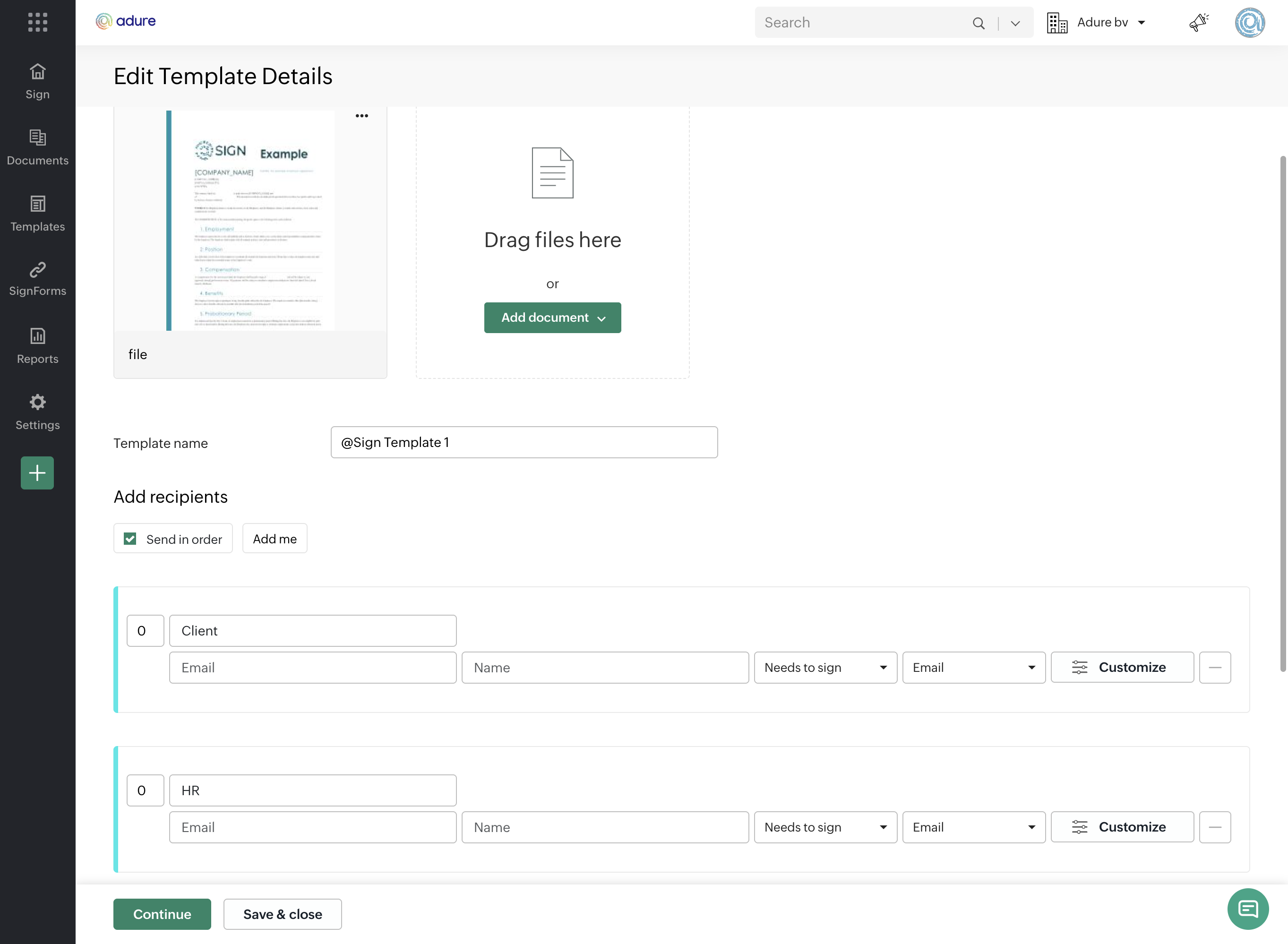 On the first screen, you can manage the documents and signer roles