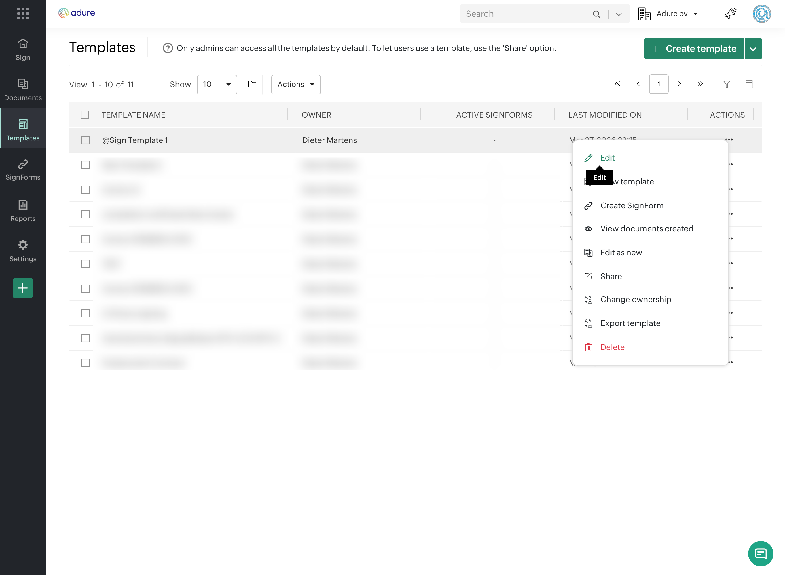 Navigate to "Sign Templates"